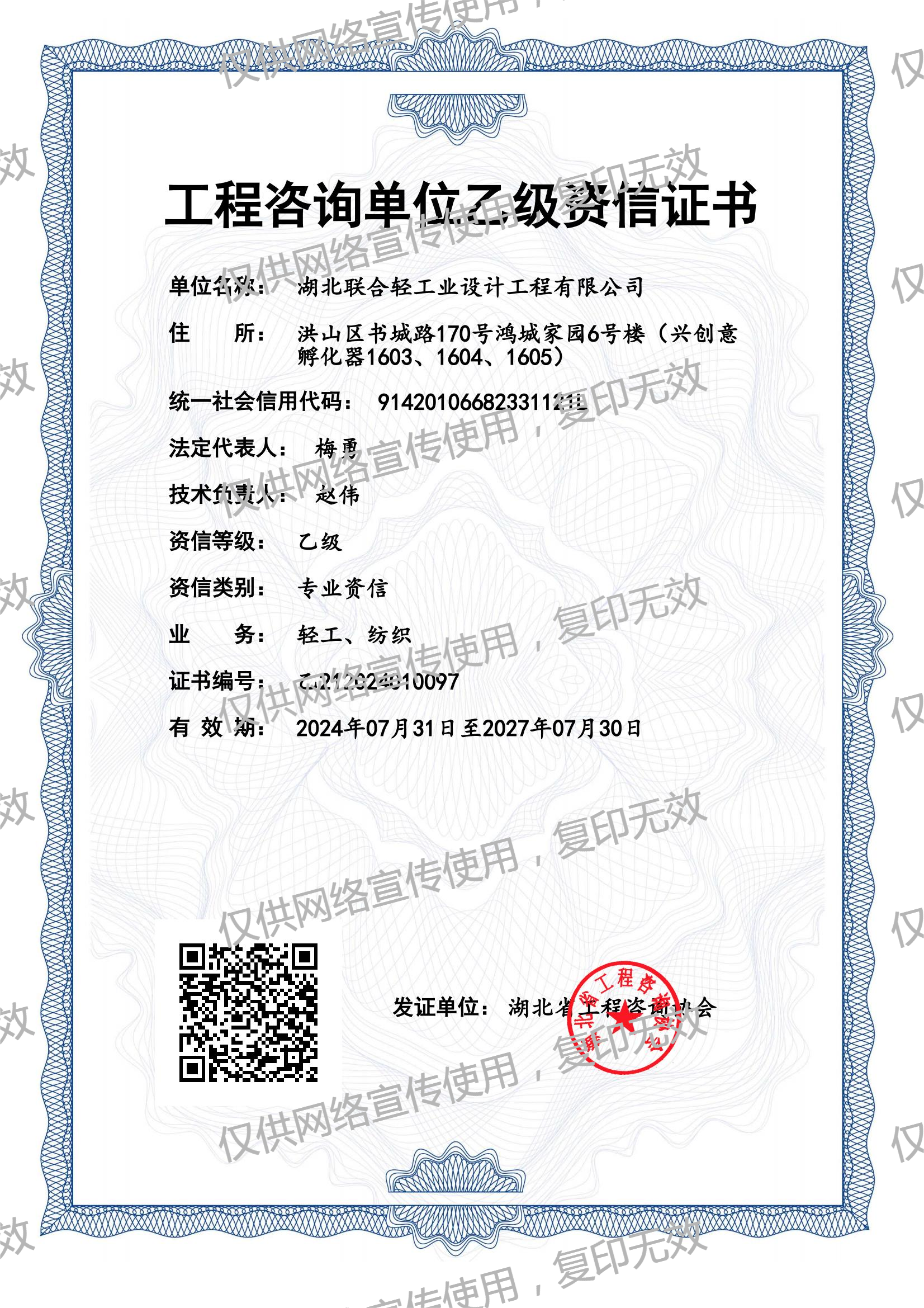 湖北聯合輕工設計工程有限公司成立于2009年,其前身為湖北省輕工業科學研究設計院設計所。2008年,根據國家關于事業單位改制、建立現代企業制度的文件要求,經湖北省輕工行業主管部門批準(批準文號:鄂輕資[2008]第40號),成立于1958年的省屬國有事業單位—湖北省輕工業科學研究...[ 查看詳情 ]